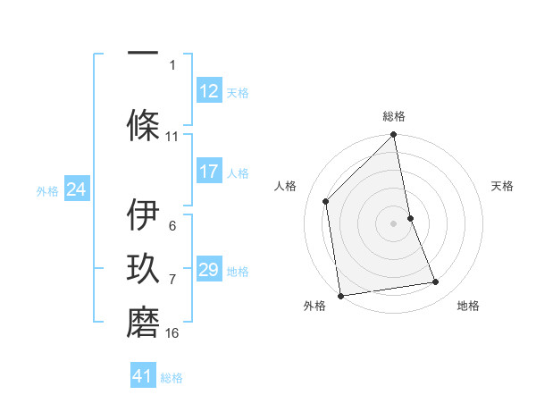 一條 伊玖磨さんを姓名の画数から五運を鑑定