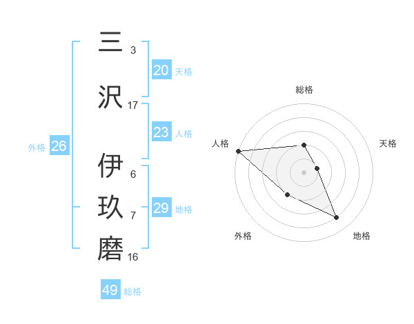 三沢 伊玖磨さんを姓名の画数から五運を鑑定