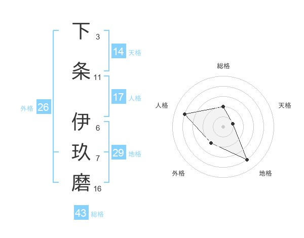 下条 伊玖磨さんを姓名の画数から五運を鑑定