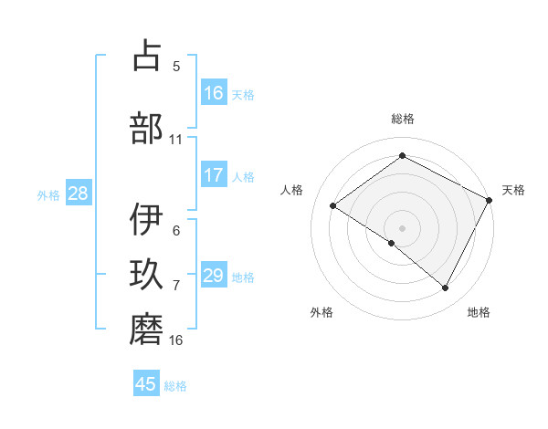 占部 伊玖磨さんの天格は16画の5点!