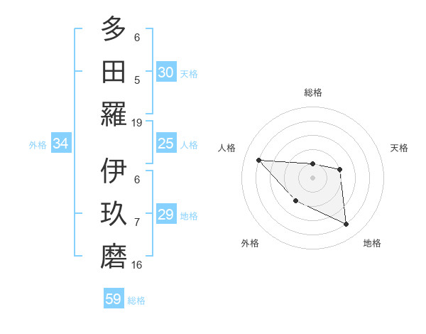 多田羅 伊玖磨さんの総格は59画の1点!