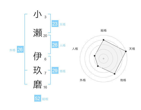 小瀬 伊玖磨さんを姓名の画数から五運を鑑定