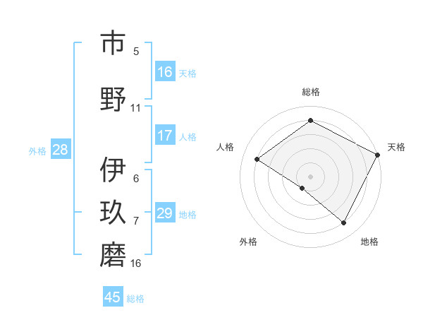 市野 伊玖磨さんを姓名の画数から五運を鑑定