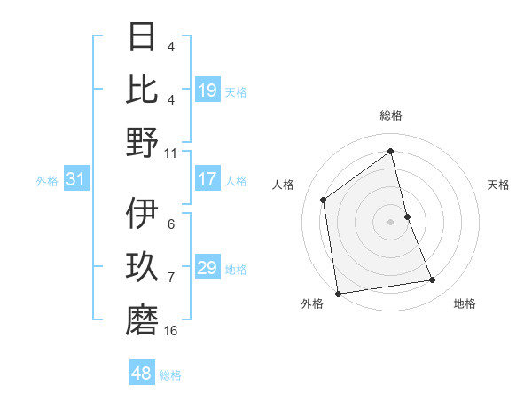 日比野 伊玖磨さんを姓名の画数から五運を鑑定