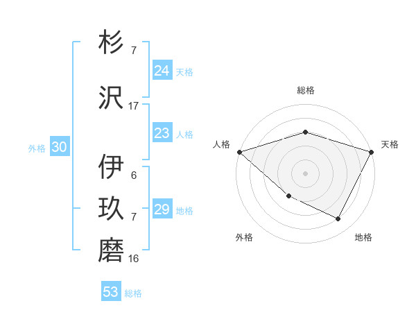杉沢 伊玖磨さんを姓名の画数から五運を鑑定
