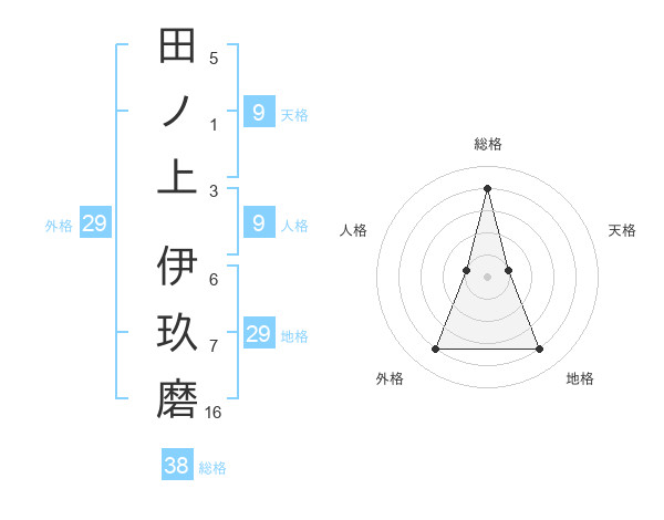 田ノ上 伊玖磨さんの総格は38画の4点