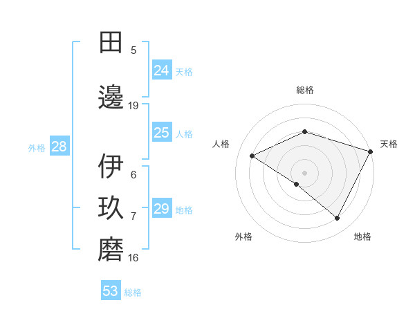田邊 伊玖磨さんを姓名の画数から五運を鑑定