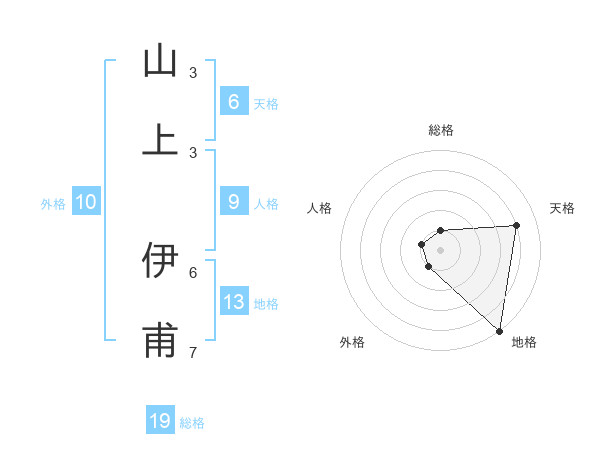 山上 伊甫さんの地格は13画の5点