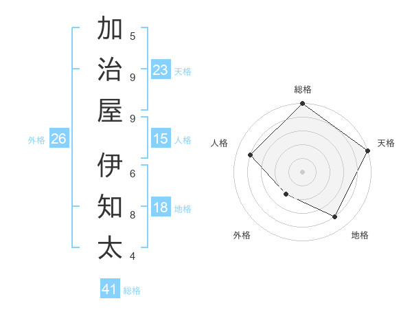加治屋 伊知太さんの総格は41画の5点!