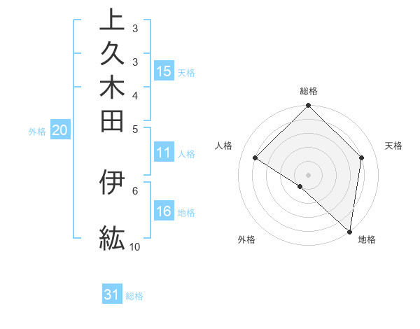 上久木田 伊紘さんを姓名の画数から五運を鑑定