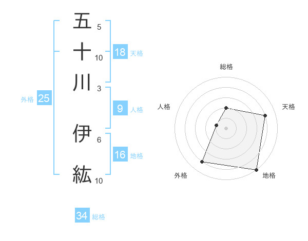 五十川 伊紘さんを姓名の画数から五運を鑑定