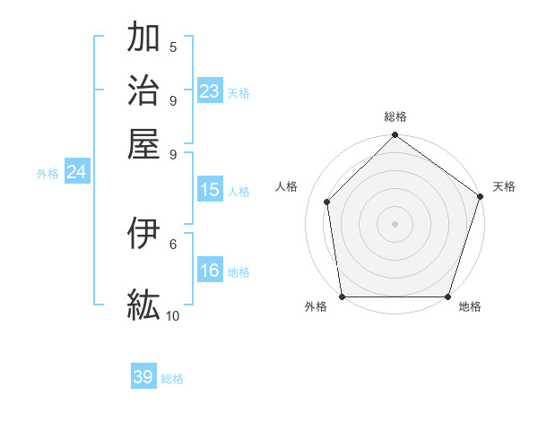加治屋 伊紘さんを姓名の画数から五運を鑑定