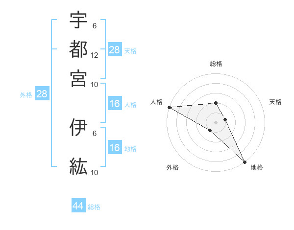 宇都宮 伊紘さんを姓名の画数から五運を鑑定