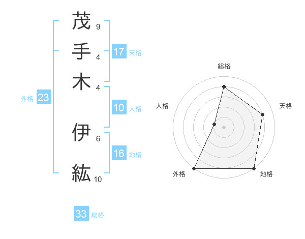 茂手木 伊紘さんを姓名の画数から五運を鑑定