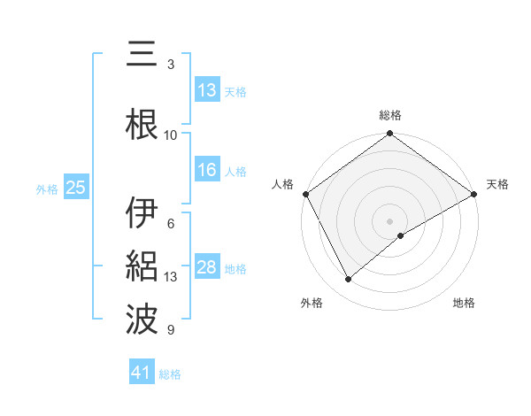 三根 伊絽波さんを姓名の画数から五運を鑑定