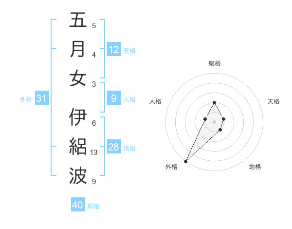 五月女 伊絽波さんを姓名の画数から五運を鑑定