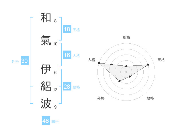 和氣 伊絽波さんを姓名の画数から五運を鑑定