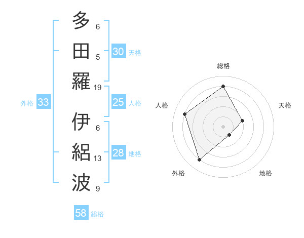 多田羅 伊絽波さんを姓名の画数から五運を鑑定