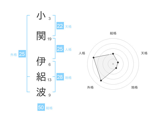 小関 伊絽波さんの総格は50画の2点!