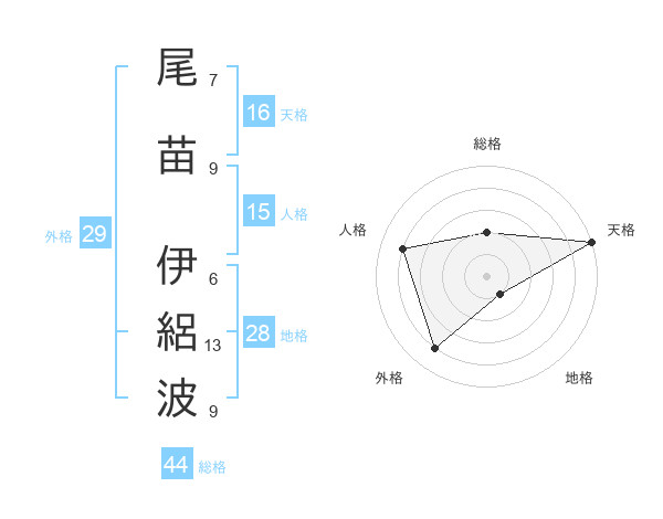 尾苗 伊絽波さんを姓名の画数から五運を鑑定