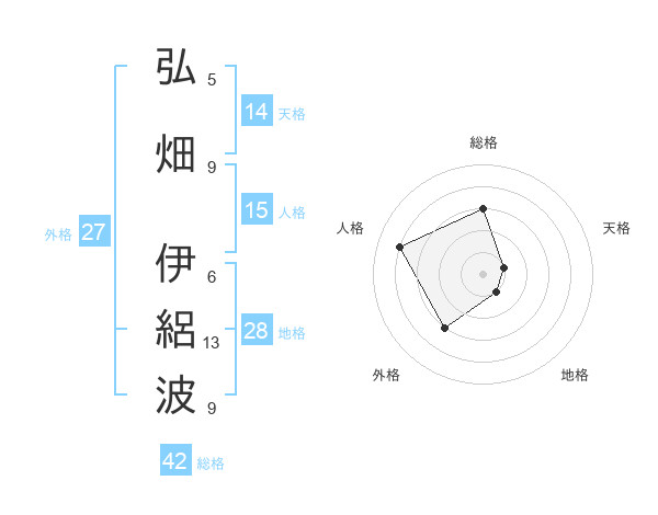 弘畑 伊絽波さんを姓名の画数から五運を鑑定