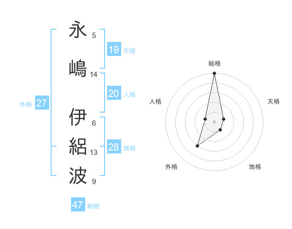 永嶋 伊絽波さんの総格は47画の5点!