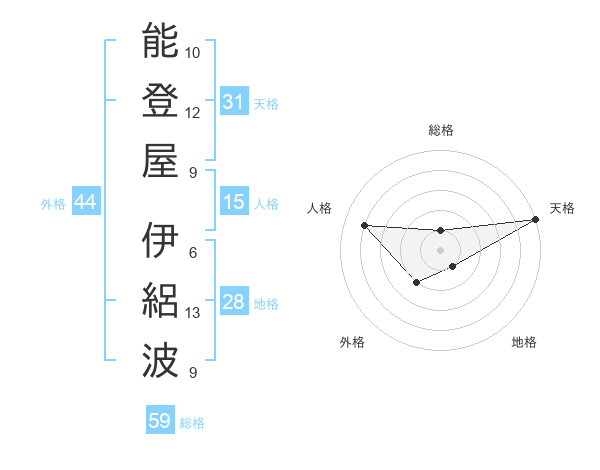 能登屋 伊絽波さんを姓名の画数から五運を鑑定