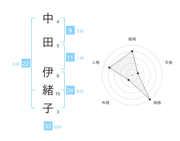 中田 伊緒子さんの総格は33画の4点