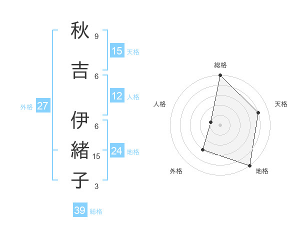 秋吉 伊緒子さんの総格は39画の5点!