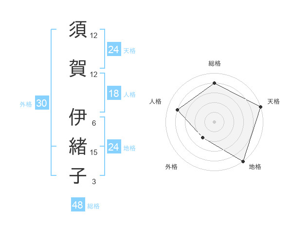 須賀 伊緒子さんの総格は48画の4点!