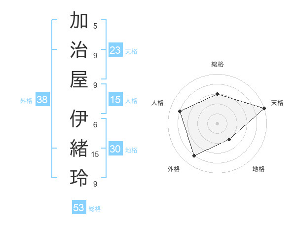 加治屋 伊緒玲さんの総格は53画の3点