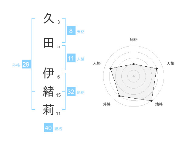 久田 伊緒莉さんを姓名の画数から五運を鑑定