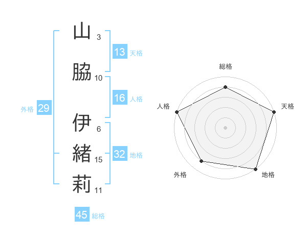 山脇 伊緒莉さんの天格は13画の5点!