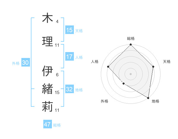 木理 伊緒莉さんの総格は47画の5点!