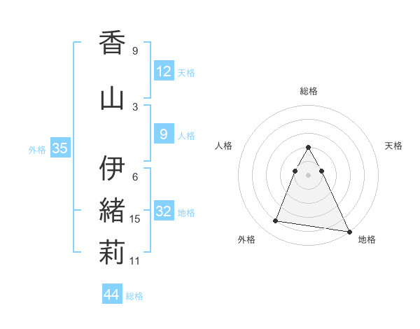 香山 伊緒莉さんを姓名の画数から五運を鑑定