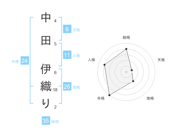 中田 伊織りさんの総格は35画の4点!