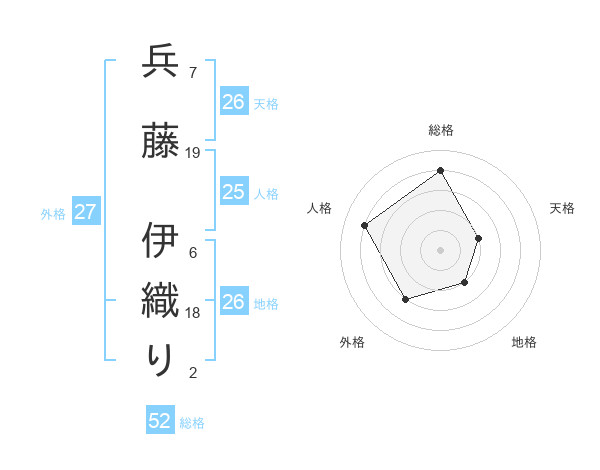兵藤 伊織りさんを姓名の画数から五運を鑑定