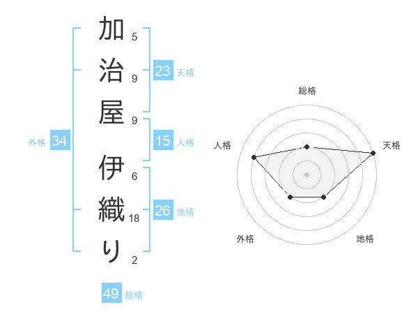 加治屋 伊織りさんを姓名の画数から五運を鑑定
