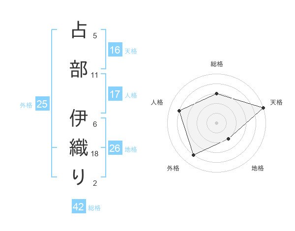 占部 伊織りさんを姓名の画数から五運を鑑定