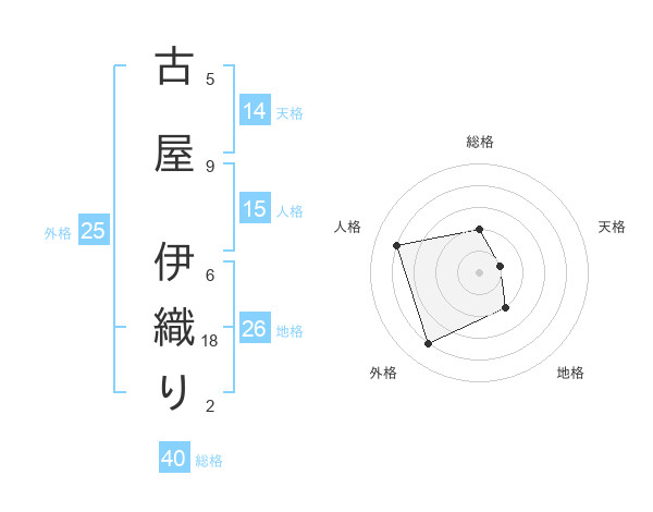 古屋 伊織りさんを姓名の画数から五運を鑑定
