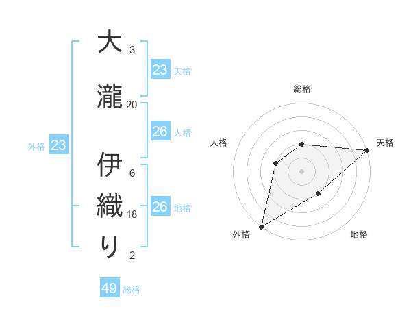 大瀧 伊織りさんを姓名の画数から五運を鑑定