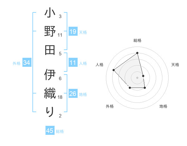 小野田 伊織りさんを姓名の画数から五運を鑑定