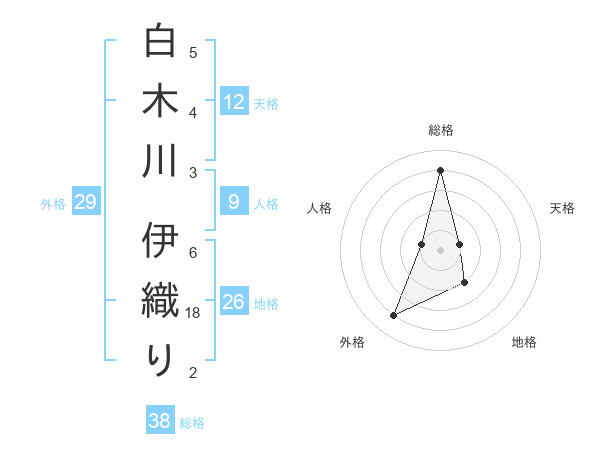白木川 伊織りさんを姓名の画数から五運を鑑定
