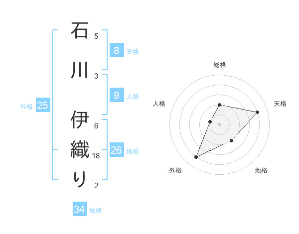 石川 伊織りさんを姓名の画数から五運を鑑定