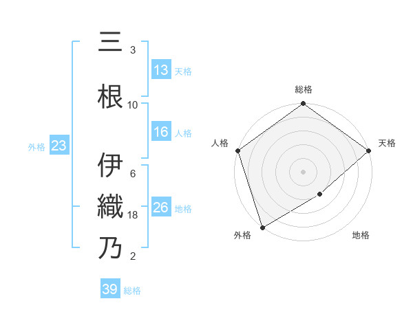 三根 伊織乃さんを姓名の画数から五運を鑑定