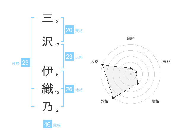 三沢 伊織乃さんを姓名の画数から五運を鑑定
