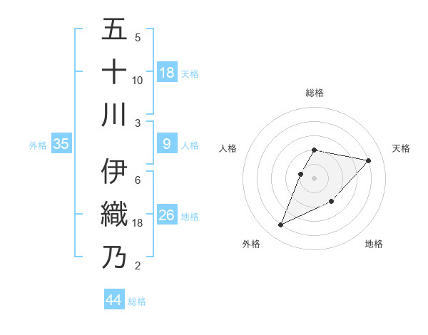 五十川 伊織乃さんの天格は18画の4点!