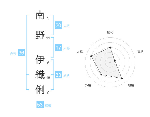 南野 伊織俐さんを姓名の画数から五運を鑑定
