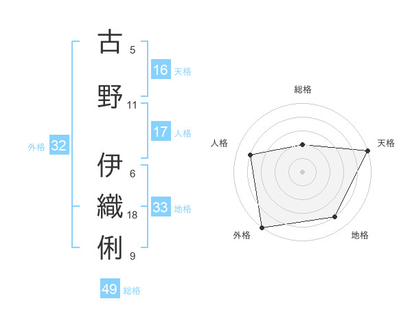 古野 伊織俐さんを姓名の画数から五運を鑑定