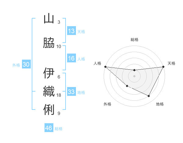 山脇 伊織俐さんを姓名の画数から五運を鑑定